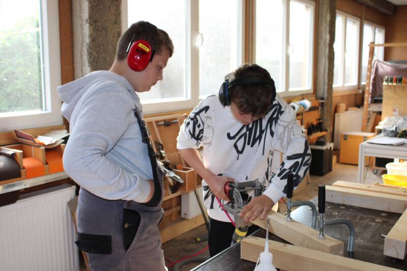 In den vergangenen Monaten haben die Achtklässler der NwT-Klasse von Herrn Michaelis gemeinsam mit Frau Kaltenbach, der Firma Storz und Holzbau Mattheis zunächst das Thema ökologisches Bauen besprochen und im Anschluss daran CAD zeichnen mit dem Programm Autodesk Inventor gelernt. Die Klasse hatte sich außerdem beim Programm "Mach was!" von Würth beworben und für ihre Projektidee den Zuschlag erhalten. Anschließend ging es in die Planung und Umsetzung ihres eigenen Projektes, einer begrünten Sitzecke für den neuen Schulgarten. Tim Szallies überzeugte mit seinem Entwurf, weshalb dieser am 15.7.2024 gemeinsam mit Herrn Mattheis und Frau Kaltenbach in der Werkhalle der Firma Mattheis umgesetzt wurde. Mit Awa, Antonia, Lena, Emma, Mahbube, Sara, Katharina, Tim und Devin wurde den gesamten Tag über gemessen, gesägt, gebohrt, geschraubt und geleimt. Dabei bewies die Gruppe großes Durchhaltevermögen und Teamgeist vor allem, wenn es einmal nicht so lief wie geplant. Das Ergebnis kann sich am Ende sehen lassen und wird in den kommenden Wochen im Schulgarten Einzug finden, sodass sich im Herbst alle Schülerinnen und Schüler daran erfreuen können.